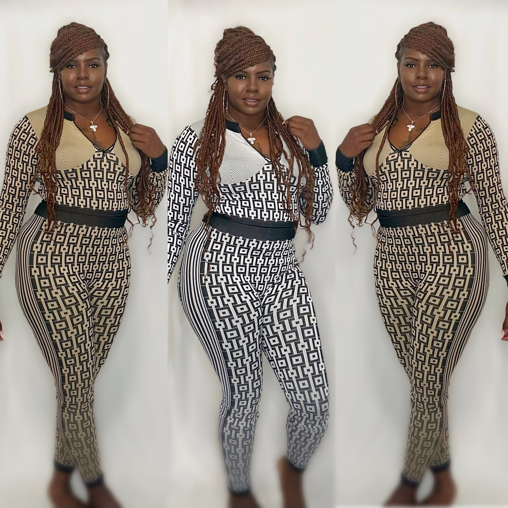 - Seamless all over jacquard print front half zip up mock neck long sleeve cropped jacket top and legging set