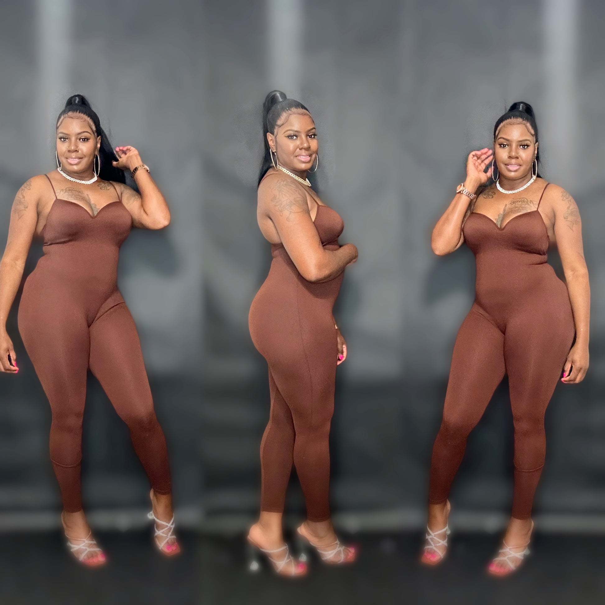 - Solid color pattern bra pad spaghetti strap jumpsuit